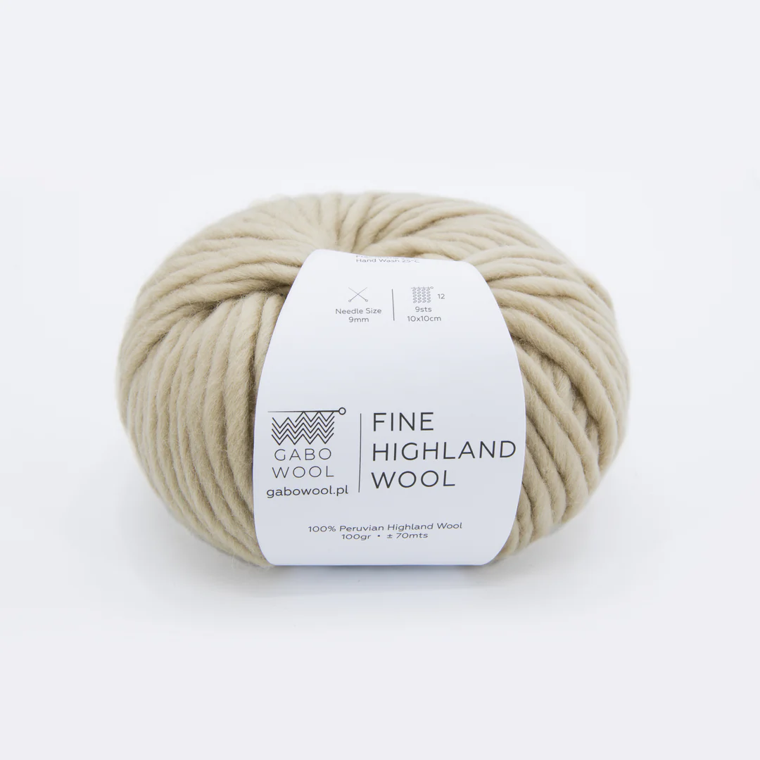Fine Highland Wool to 100% naturalnej wełny peruwiańskiej, pozyskiwanej od owiec żyjących w surowym, wysokogórskim klimacie Andów. Włóczka jest gruba, sprężysta i puszysta, w formie pojedynczej, delikatnie skręconej nitki typu singiel.